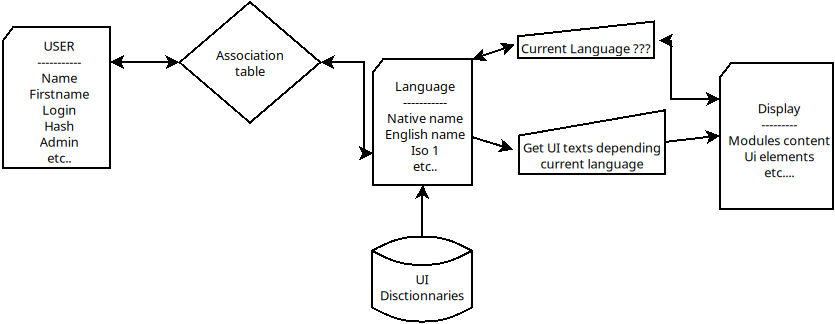It can also be associated with another object, for example: the "User" object is associated with a "language" object -> "John" <->"English".
